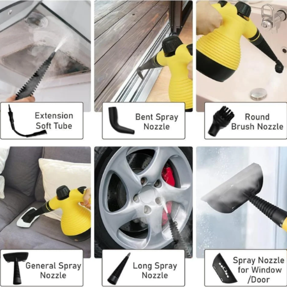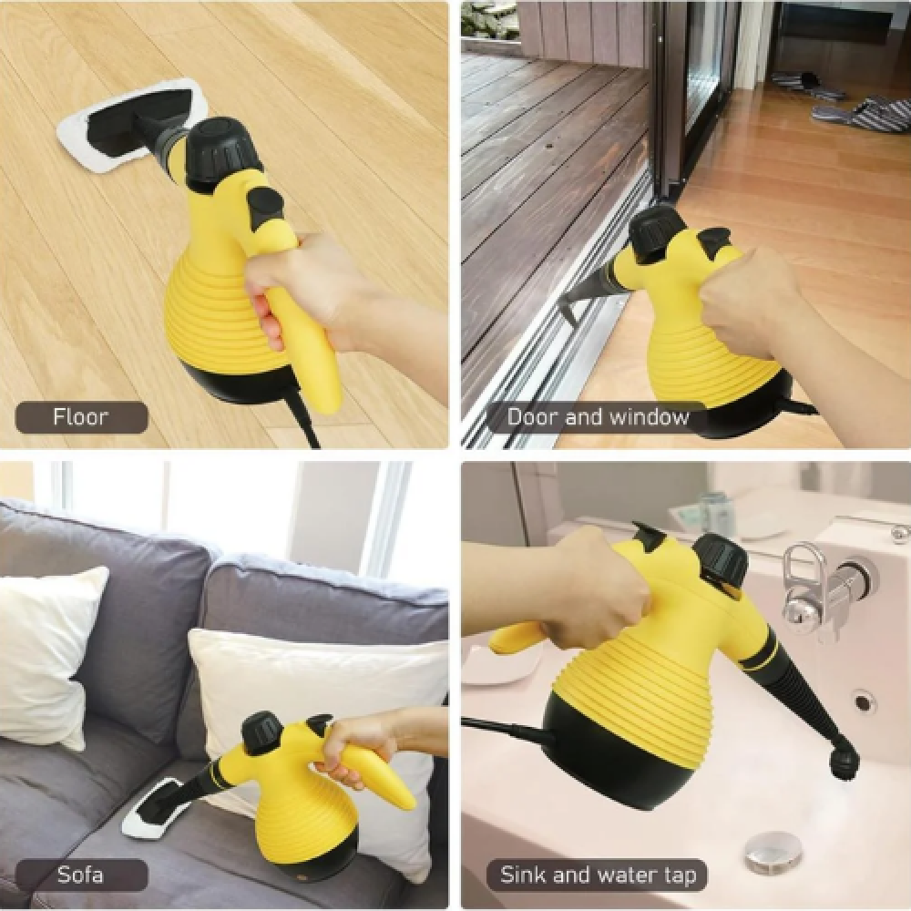 جهاز تنظيف بالبخار بحجم صغير وسهل الحمل. مثالي لتنظيف الزوايا الصعبة والأسطح المتنوعة مثل الزجاج، السيراميك، والمفروشات. يعمل بقوة ضغط بخار عالية تتيح إزالة البقع العنيدة بسهولة.